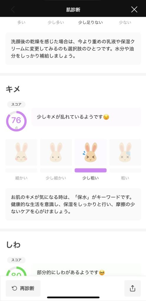 私の場合は、いつも決まって「肌のキメが粗い」と出ます。。